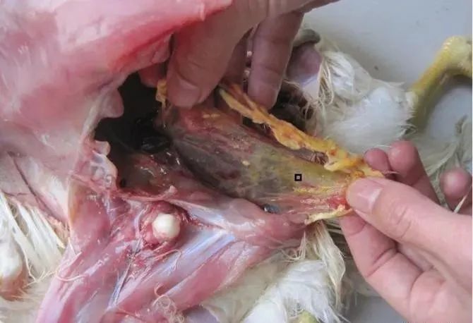 病雞通常呼吸道的癥狀比較明顯。不僅氣喘甩鼻、呼嚕、腫頭腫眼、張口呼吸、流淚,精神萎靡、食欲減退。嚴(yán)重的氣囊炎可見氣囊壁增厚,有大小不等的黃白色到黃色干酪樣滲出物,肺臟充血、出血,喉頭出血,氣管出血嚴(yán)重。另外,有的病死雞還會(huì)出現(xiàn)心包炎、肝周炎,腹膜炎等癥狀。
